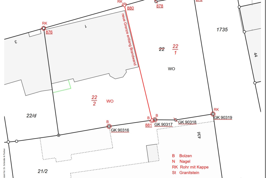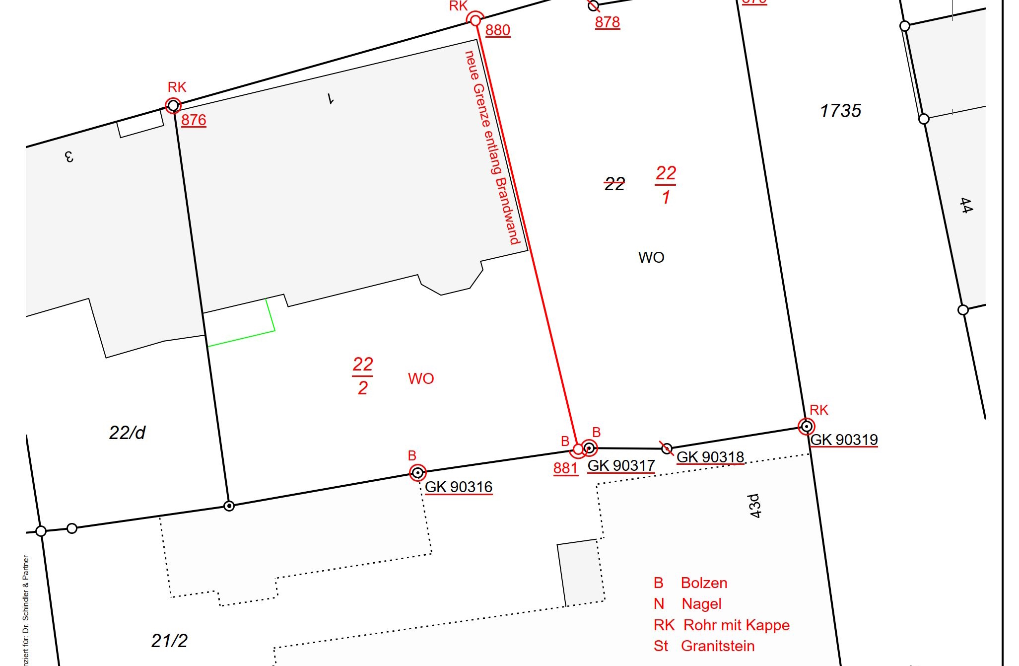 Teilung eines Flurstücks in Leipzig Gohlis entlang der Brandwand eines Mehrfamilienhauses