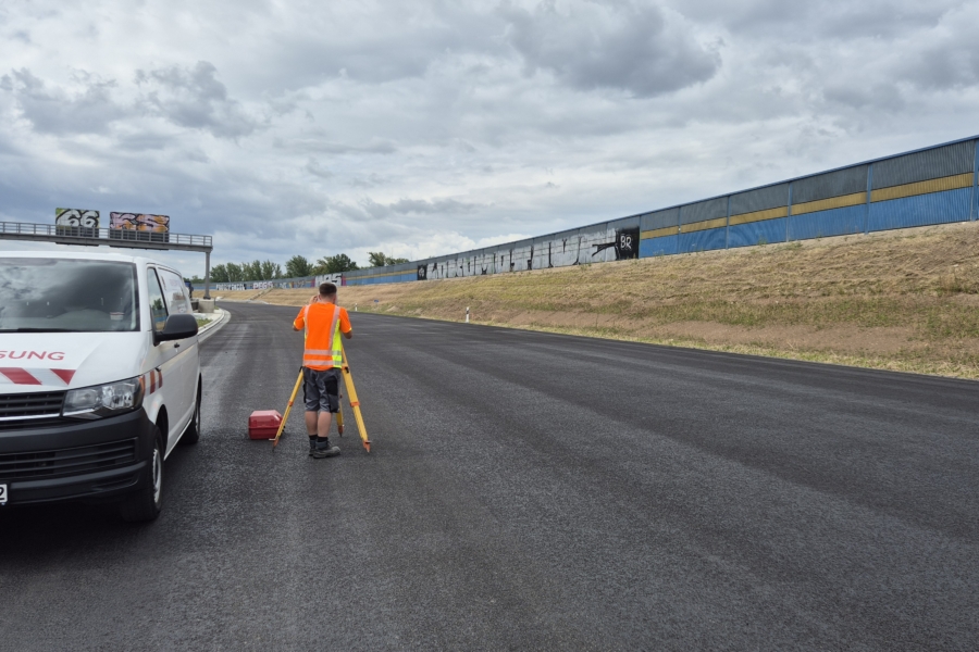 Baukontrollvermessung und Achsabsteckung der neuen Geschäftsstelle von RB Leipzig in der Capastraße